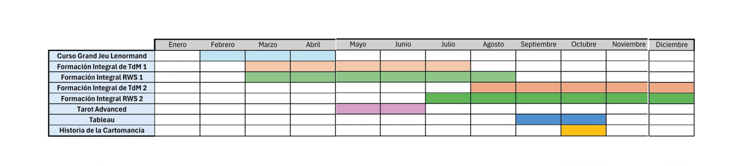 Marzo: – inicio de las Formaciones Integrales de Tarot de Marsella (TdM) y Rider Waite Smith (RWS), el día martes 3/3/26 y el día 5/3/26, respectivamente, a las 19hs Arg. (Zoom). Duración TdM: 5 meses; duración RWS: 6 meses.